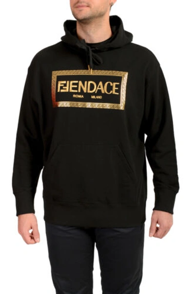 Pre-owned Men's Black&gold Logo Embroidery Hooded Sweatshirt Hoodie Us M It 50