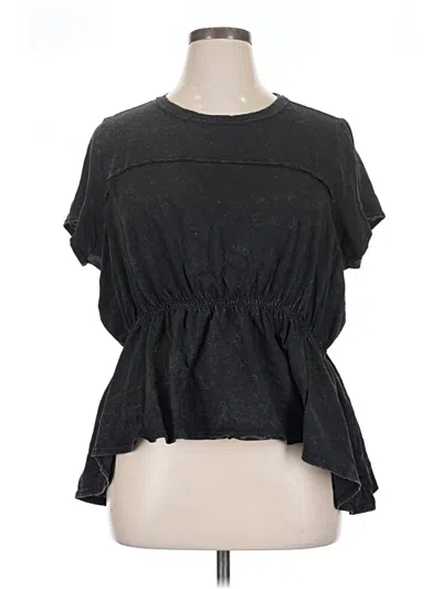 Short Sleeve Top Black Keyhole Neckline Tops