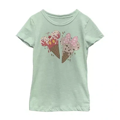 Little & Big Kid Girls Crew Neck Short Sleeve Slim Fit Mickey And Friends Graphic T-shirt In Green
