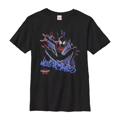Miles Morales Little & Big Kid Boys Crew Neck Short Sleeve Regular Fit Spiderman Graphic T-shirt In Black
