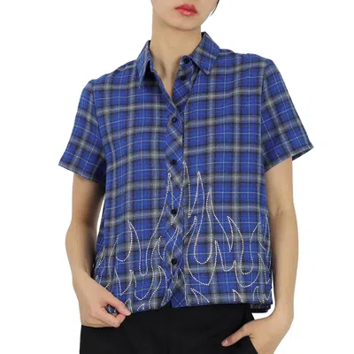 Filles A Papa Sequins Embroidery Top In Blue