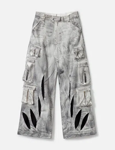 Waxed White Cargo Trousers In Gray