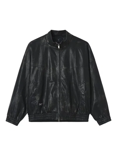 Logo-embroidered Faux-fur Baseball Jacket In Blue