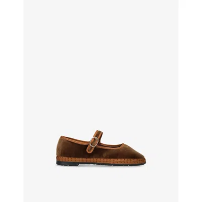 Brown Kids' Yoki Cotton-velvet Mary Jane Flats Eur 32 / 13 Uk