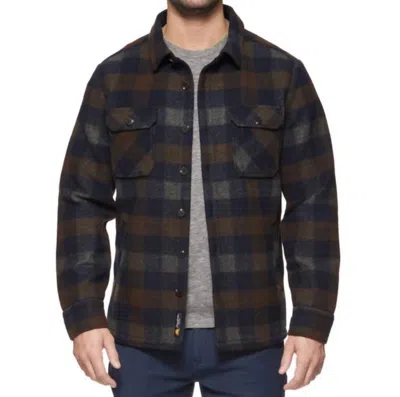 Milbank Flannel Shirt Jacket In Navy/brown/cream In Multi
