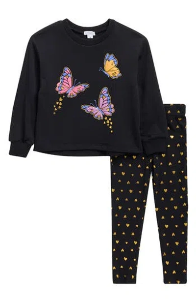 Kids' Butterfly Pullover & Leggings Set In Black