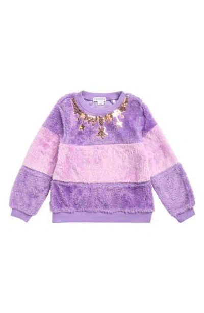 Kids' Faux Fur & Sequin Stripe Pullover Sweater In Purple