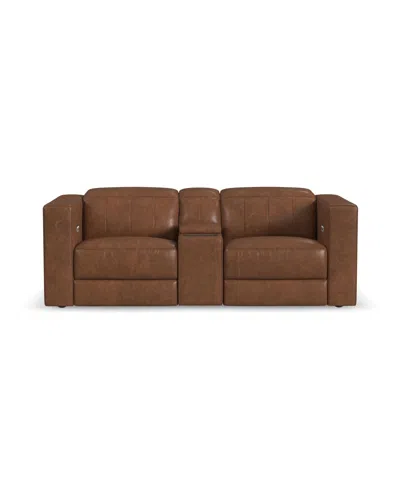 Austin 84" Chestnut Leather Power Reclining Loveseat With Console