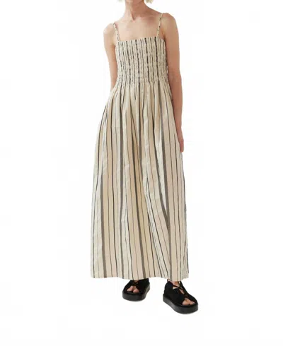Liv Ruched Bodice Dress In Stripe Jacquard In Neutral