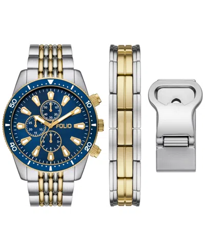 Men's Three Hand 2t Silver-tone, Gold-tone Alloy Watch 42mm Gift Set In Two-tone
