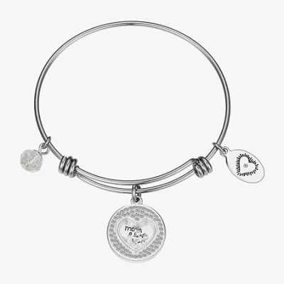 Mom Womens Crystal Stainless Steel Round Bangle Bracelet In Metallic