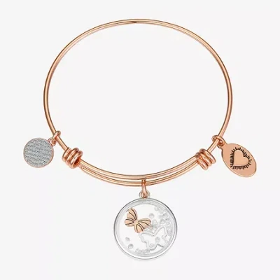 Mother & Daughter Womens Cubic Zirconia Stainless Steel Butterfly Bangle Bracelet In Gold