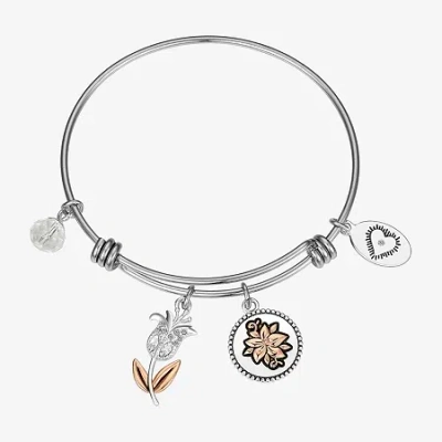 Sister Womens Stainless Steel Flower Bangle Bracelet In Silver
