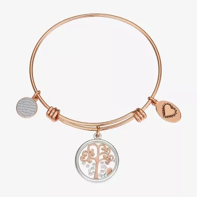 Tree Womens Cubic Zirconia Stainless Steel Round Bangle Bracelet In Gold