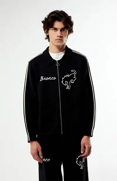 Men's Bronco Ribbed Full Zip Sweater In Black