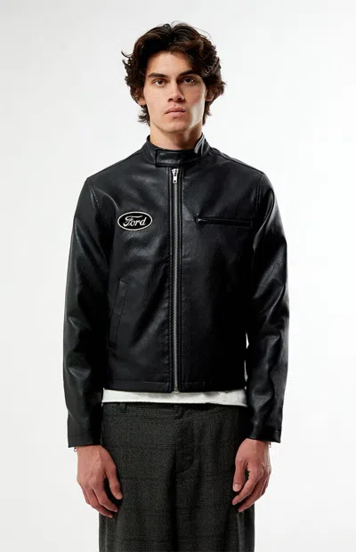 Men's Cafe Racer Faux Leather Jacket In Black