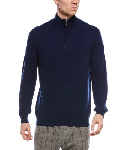 Cashmere Mock Neck Cashmere 1/4-zip Sweater In Blue