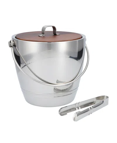 Crafthouse Stainless Steel Round Ice Bucket With Wood Lid And Tongs In Silver