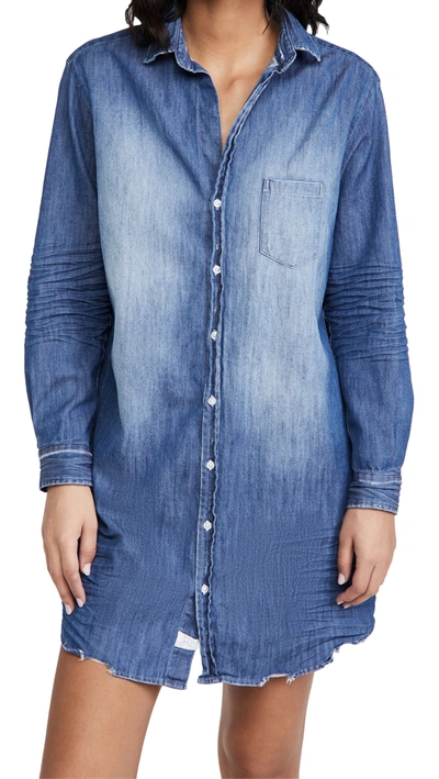 Mary Famous Cotton Denim Long Sleeve Shirtdress In Blue