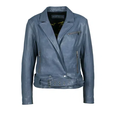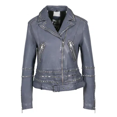 Women's Grey Leather Biker Jacket Graphite In Blue