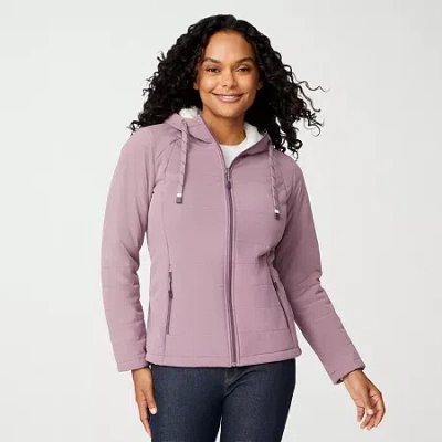 Womens Hooded Water Resistant Midweight Softshell Jacket In Purple