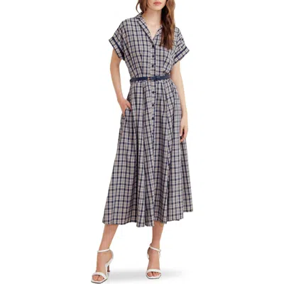 Buckle Tab Denim Fit & Flare Midi Dress In Blue
