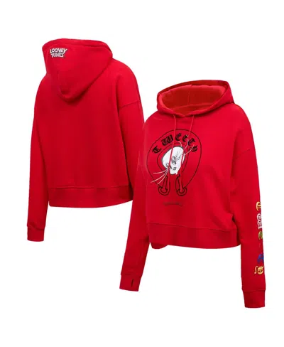 Women's Looney Tunes Tweety Bird Cropped Pullover Hoodie In Red