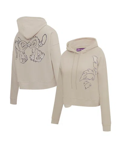 Women's Tan Lilo And Stitch Nose Kiss Cropped Pullover Hoodie