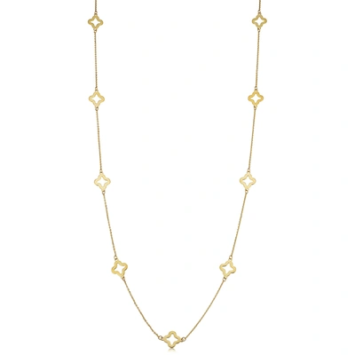 14k Yellow Gold Clover Flower Station Necklace (26 Inch)