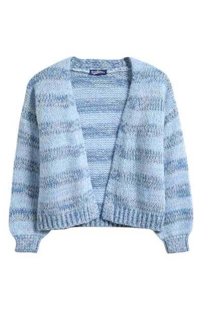 Kids' Stripe Mixed Stitch Open Front Cardigan In Blue