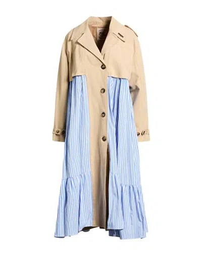 8 Woman Overcoat & Trench Coat Beige Size 12 Cotton