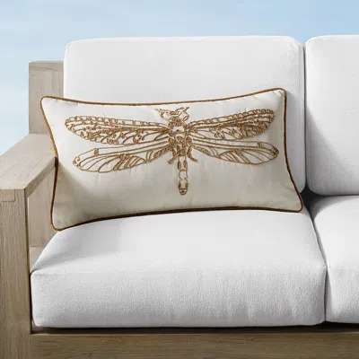 New York Botanical Garden Stitched Dragonfly Indoor/outdoor Pillow Cover In White