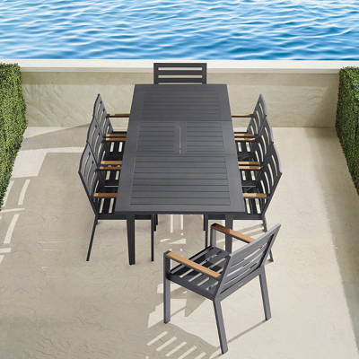 Carlisle 7-pc. Teak Top Dining Set In Onyx Aluminum