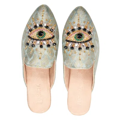 Women's Green The Good Eye - Mint Crystal Embroidered Mules By In Multi