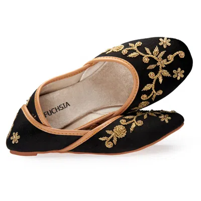 Women's Marina - Handcrafted Gold Wire Embroidered Velvet Flats By - Black In Multi