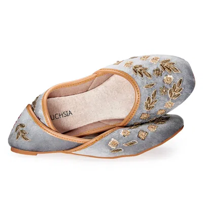 Women's Nawal - Handmade Artisan Crafted Embroidered Flats By - Grey In Blue