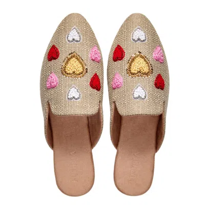 Women's Neutrals Little Love - Valentine Hearts Embroidered Jute Mules By - Natural In Pink