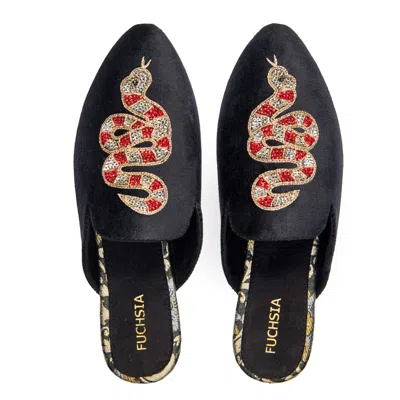 Women's Serpent Black - Vegan Handmade Crystal-embroidered Velvet Mules By