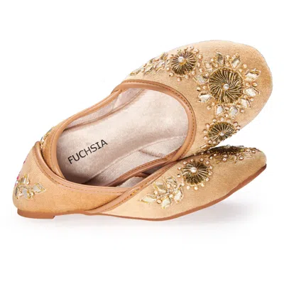 Women's Whistledown - Handmade Thread & Sequin Embroidered Velvet Flats By - Gold In Brown