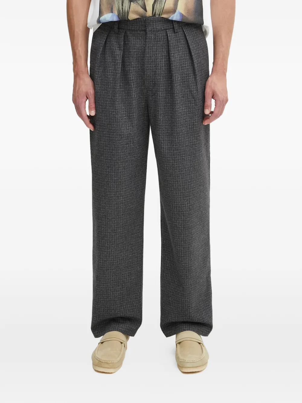 Checked-pattern Pleated Trousers In Gray