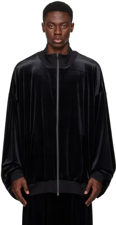 Zip-up Velvet Bomber Jacket In Black