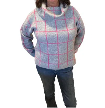 Cowl Neck Grid Sweater In Grey Pink In Gray