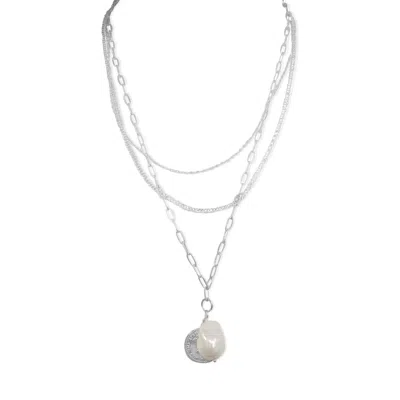 Women's Steel Me Silver Triple Chain & Pearl Necklace