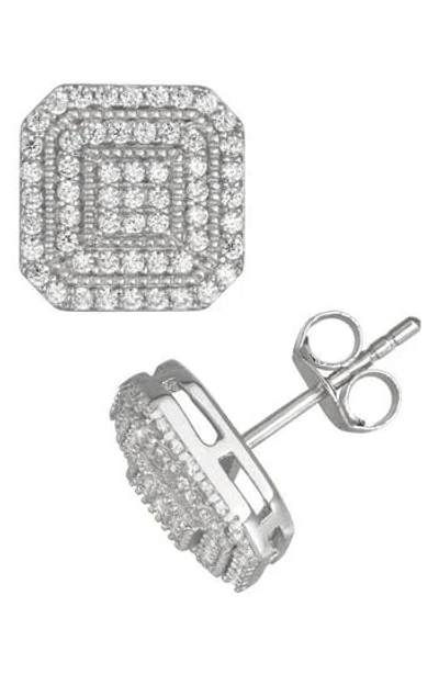 Sterling Silver Cz Pavé Stud Earrings In White/silver