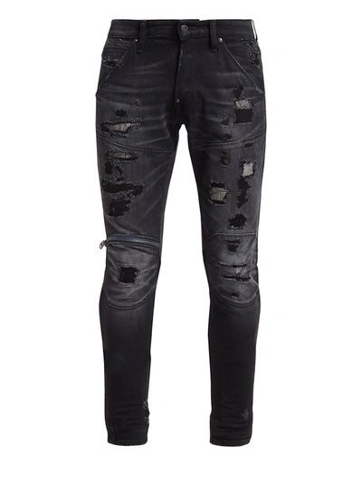 5620 3d Zip Knee Skinny Jeans In Black Denim