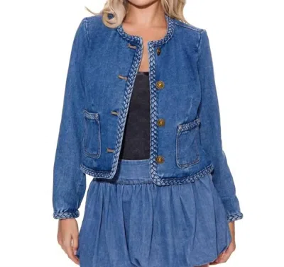 Denim Braided Trim Blazer In Blue
