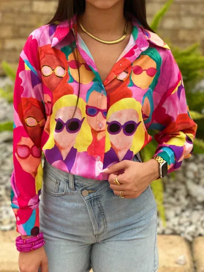 Shady Lady Sunglasses Shirt In Pink Multi