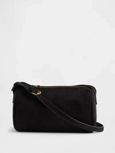Vegan Suede Barrel Bag In Black