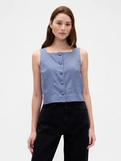 Linen-blend Button-front Shell Top In Blue