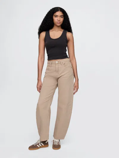 High Rise Barrel Jeans In Classic Khaki Tan